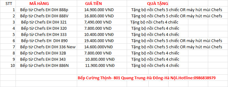 Địa chỉ mua bếp từ Chefs chính hãng tại Hà Đông