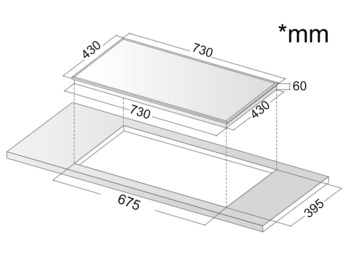 Kích thước mặt bếp 730 x 430 mm