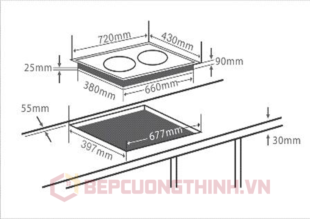 Kích thước mặt bếp: 72 x 43 ( cm)