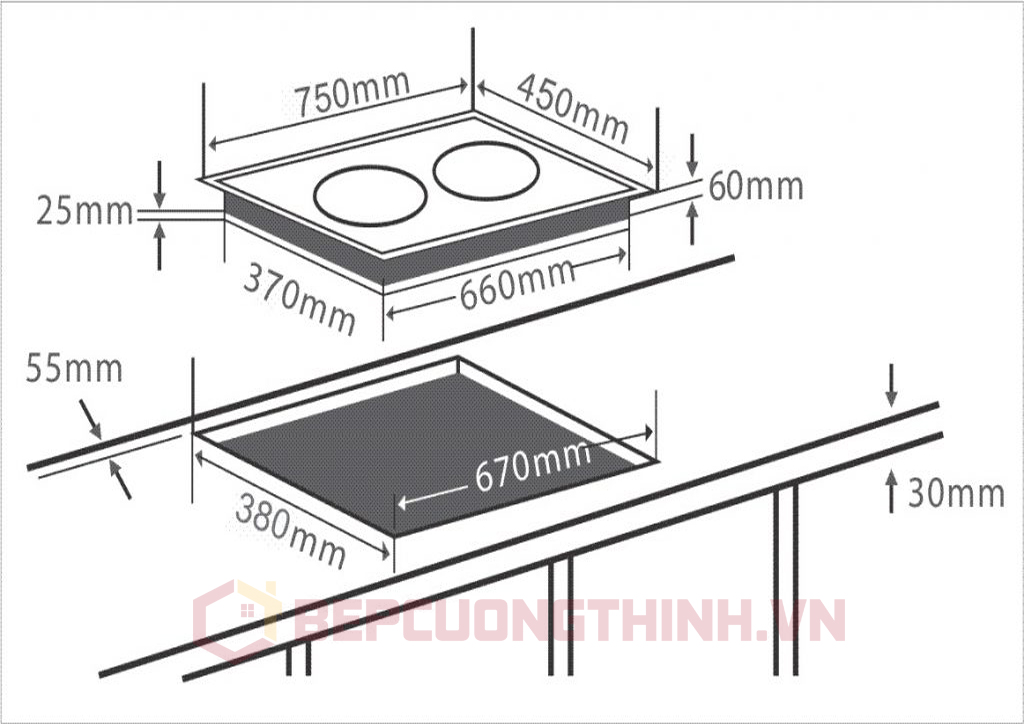 Kích thước mặt bếp: 75 x 45 ( cm)