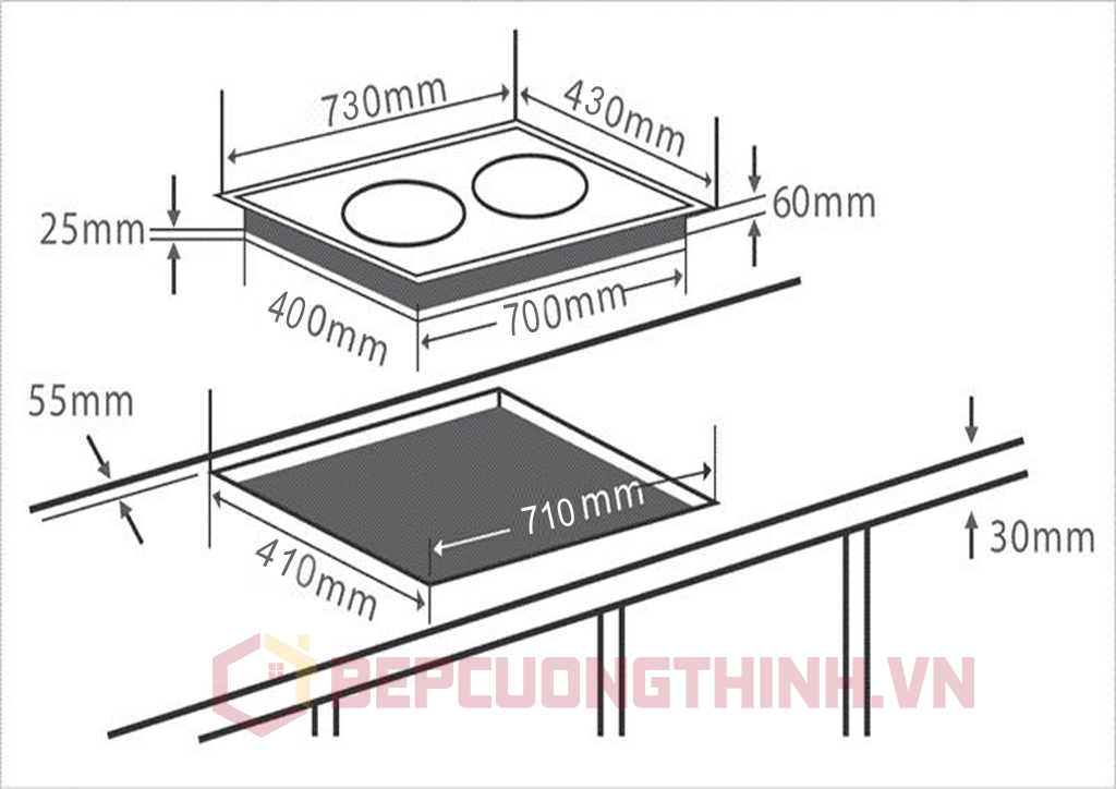 Kích thước khoét lỗ710x410mm