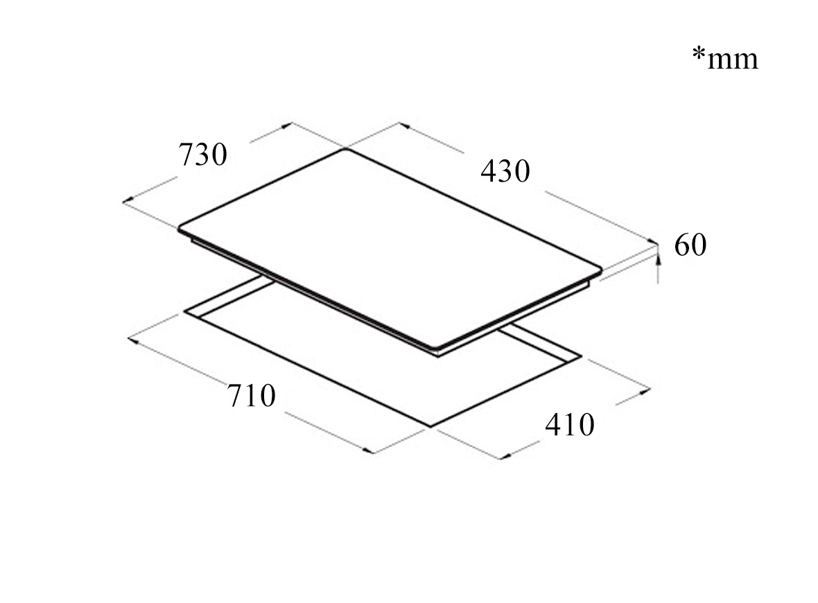 Kích thước mặt bếp 730 x 430 x 60 mm