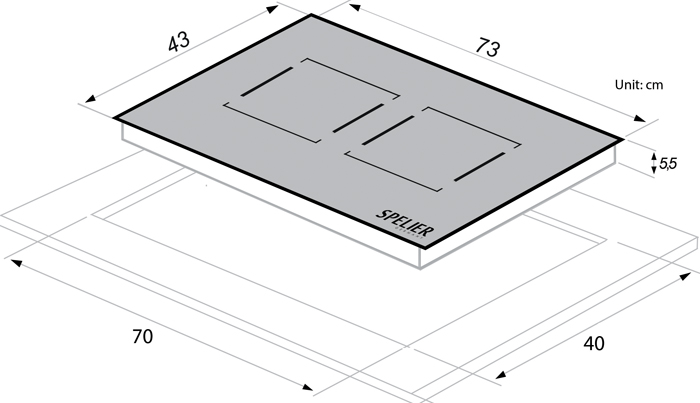 • Kích thước bếp (D x R x C): 73 x 43 x 5,5 cm
