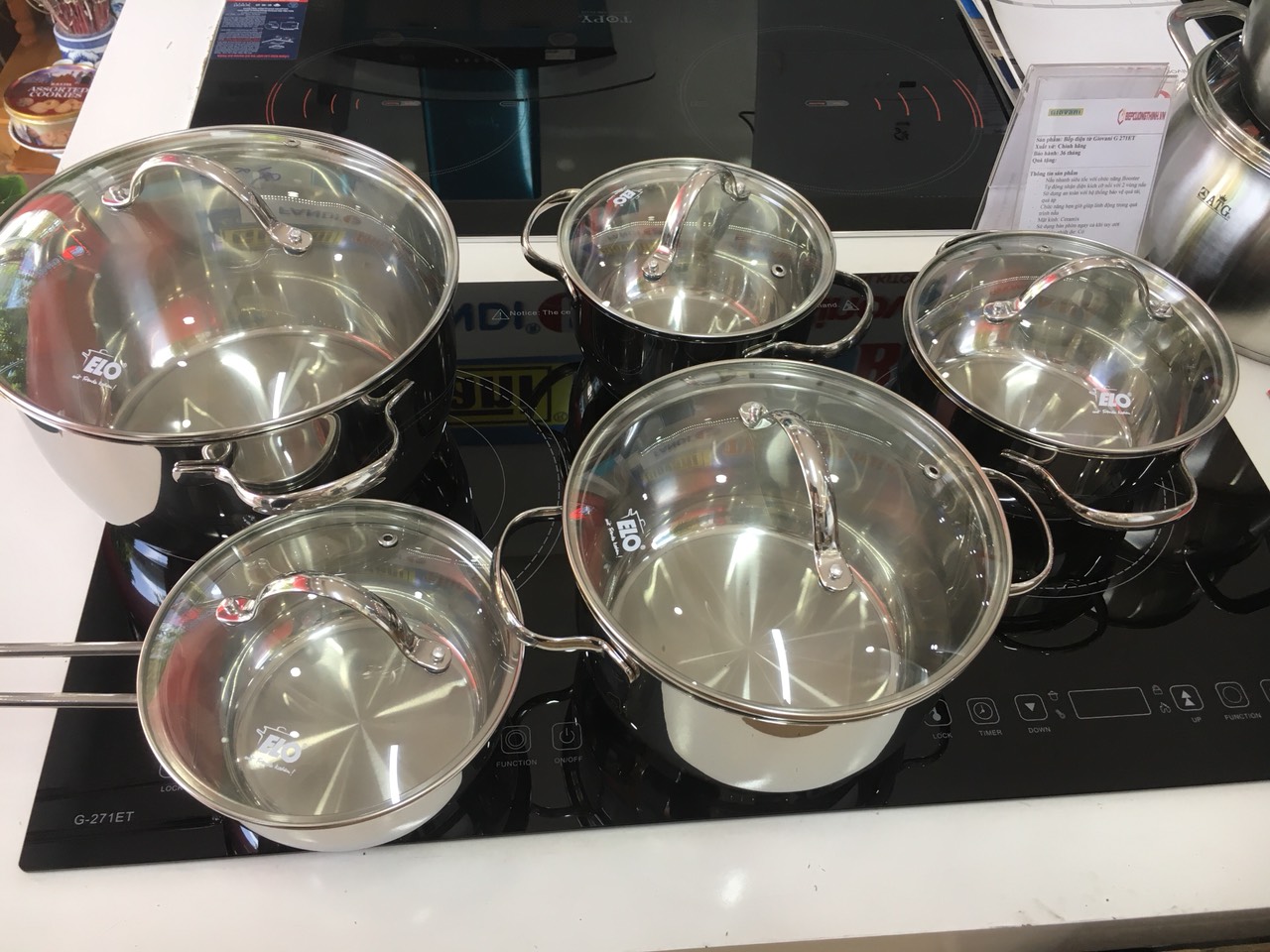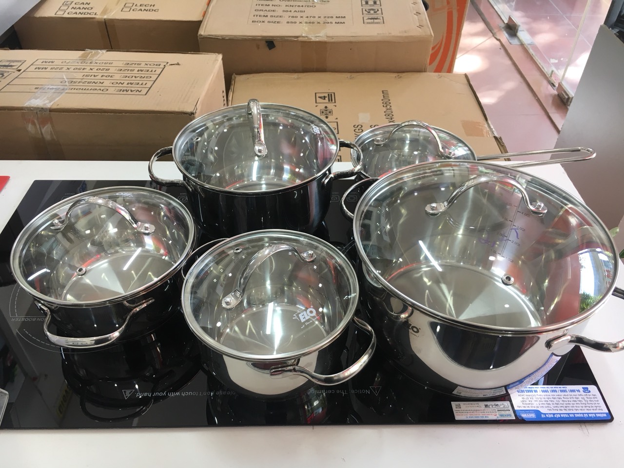 Bộ nồi inox Elo luna Plus sử dụng chất liệu Inox 304 cao cấp, không độc hại với sức khỏe, sử dụng thích hợp nhất trên bếp từ, bếp hồng ngoại gồm 5 nồi với dung tích khác nhau do vậy bạn có thể lựa chọn nồi phù hợp với nhu cầu của mình trong quá trình sử dụng.