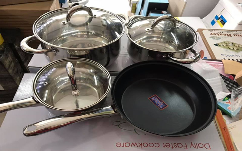 Bộ nồi Faster Daily đang bán với giá 1.000.000 VNĐ là mức giá hợp lý nhất hiện nay. Bộ nồi bao gồm 3 nồi và 1 chảo với chất liệu inox 304 cao cấp, các kích cỡ khác nhau sẽ giúp bạn chế biến nhiều món ăn nhanh và thuận tiện hơn.