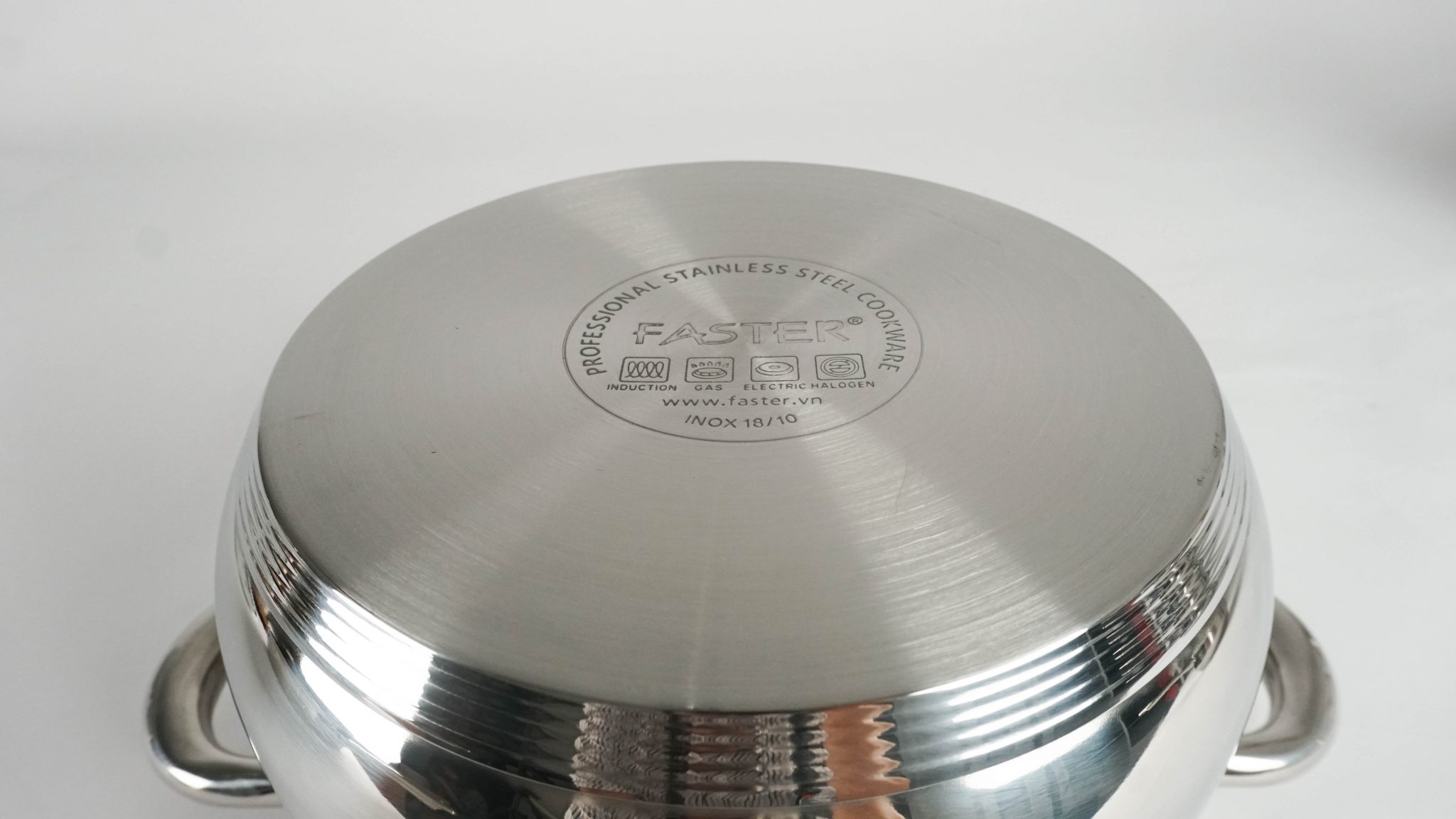 Bộ nồi từ Faster Luxury được làm bằng chất liệu Inox 304 sáng bóng dày dặn không rỉ,không bị ăn mòn đặc biệt không ảnh hưởng sức khỏe. Bộ nồi gồm 3 chiếc nồi 1 chiếc chảo với kích thước đa dạng khác nhau phù hợp với nhu cầu người tiêu dùng.