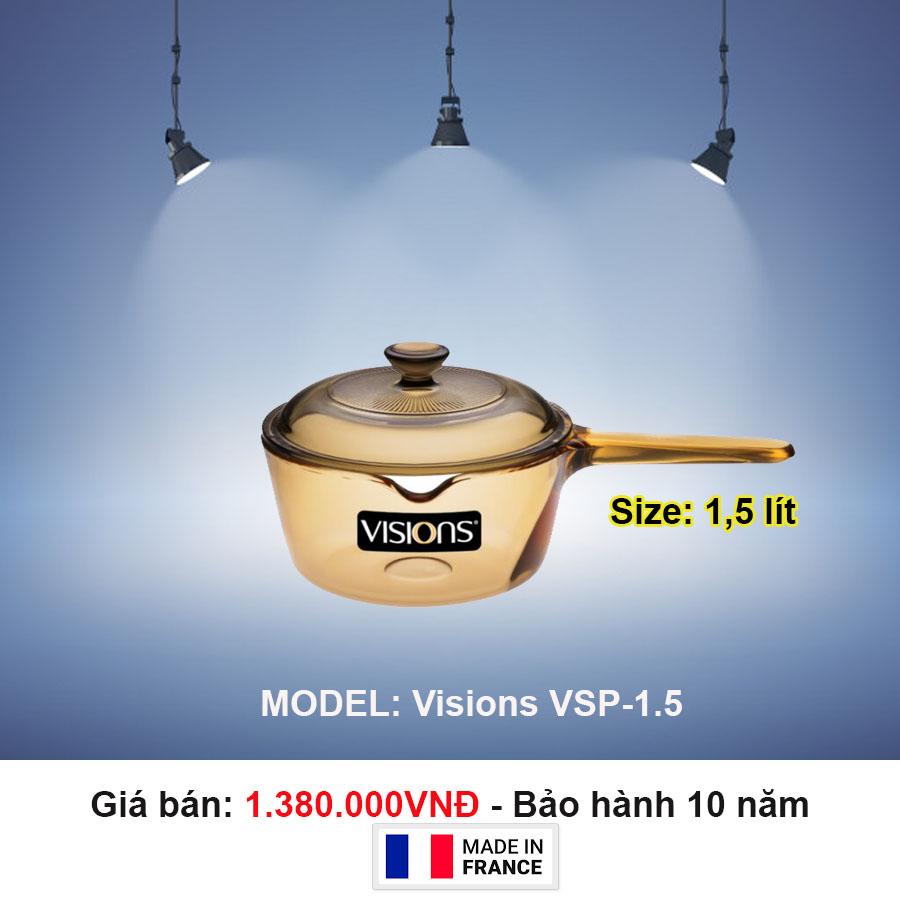 Với 1.380.000 VND chúng ta sẽ sở hữu nồi thủy tinh Visions 1,5 lít,bộ nồi được sản xuất tại Pháp,với kích thước nồi là 330x220x120 mm,ngoài ra bộ nồi có bảo hành lên tới 10 năm.Nồi thủy tinh Visions cầm tay còn có khả năng giữ nhiệt lâu,giúp cho người dùng đun nấu nhanh,tiết kiệm năng lượng.