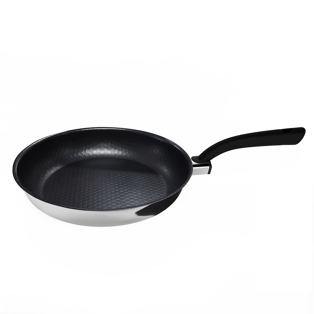 Chảo từ Inox độ dày 2,3mm sử dụng công nghệ tráng men Excalibur chống dính chịu được nhiệt độ cao & bền theo tiêu chuẩn Châu Âu, bên trong chảo phủ lớp tráng men Excalibur chống dính & bề mặt chảo được thiết kế kiểu tổ ong làm thức ăn mau chín, bên ngoài chảo làm bằng Inox, tay cầm được làm bằng nhựa tổng hợp, Sử dụng trên bếp gas, bếp hồng ngoại, bếp từ.