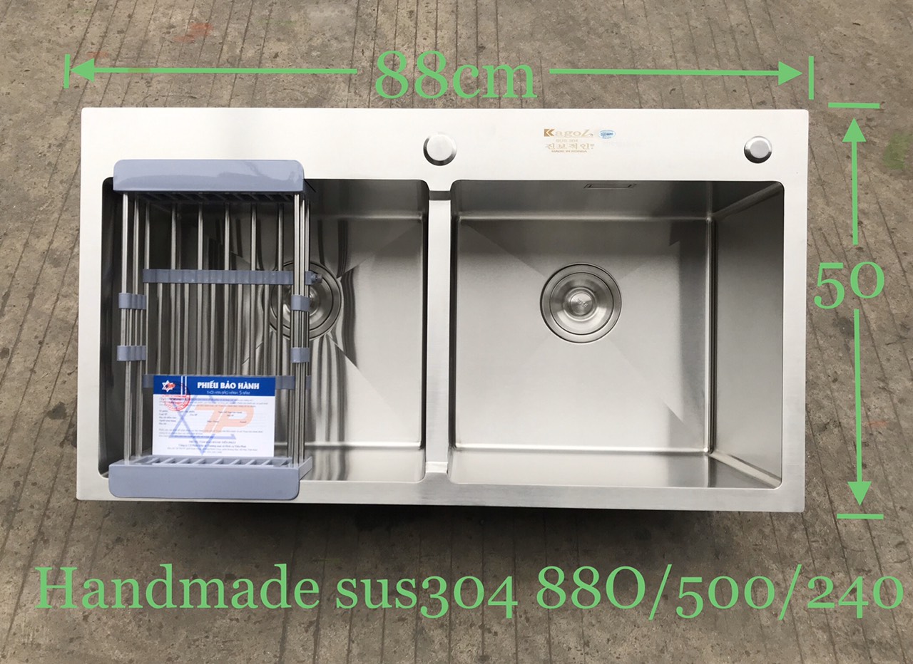 - Phụ kiện: Bộ xả, lọc rác Inox cao cấp giúp chống hôi, thoát nước tốt