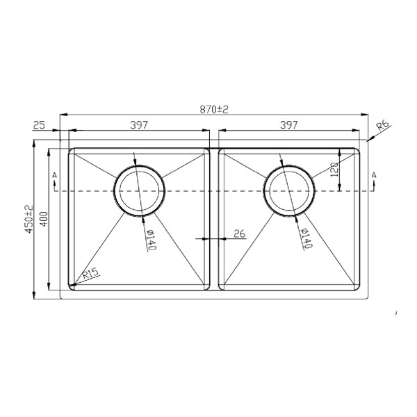 Kích thước hố(mm): 400x400;400x400
