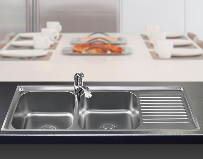 Loại chậu rửa inox dập liền khối - có 2 hố 1 bàn