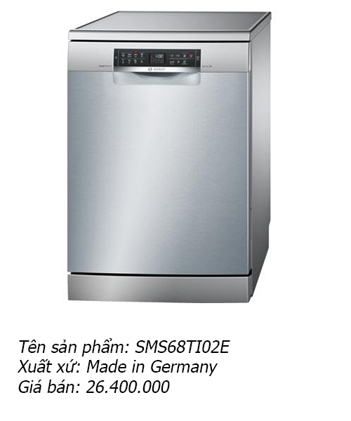 - Máy rửa bát Bosch SMS68TI02E là model nổi bật của hãng máy rửa bát Bosch được nhập khẩu chính hãng từ Đức có chất lượng cao được người dùng lựa chọn nhiều, thiết kế độc lập với công suất rửa cho 1 lần hoạt động là 13 bộ chén bát.
