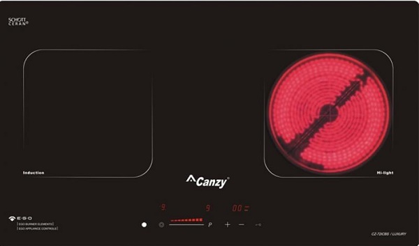 Bếp điện từ Canzy kết hợp giữa điện và từ trên cùng 1 bếp như vậy sẽ dễ dàng và rất thuận tiện khi bạn nấu nướng.
