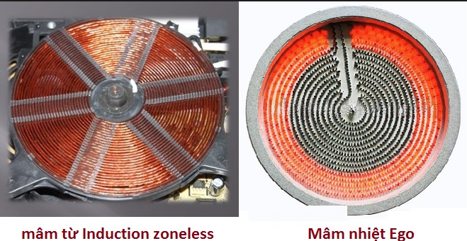 - Bên vùng nấu hồng ngoại có kích thước và công suất với 2 vòng nhiệt là 2200W, sử dụng hệ mâm nhiệt EGO - Hilight hai vòng nhiệt tận dụng được mọi kích cỡ nồi nấu mà ưu điểm đặc biệt không kén nồi, bạn có thể nướng ngô, khoai,… trực tiếp lên mặt bếp, rất đa năng khi chế biến món ăn