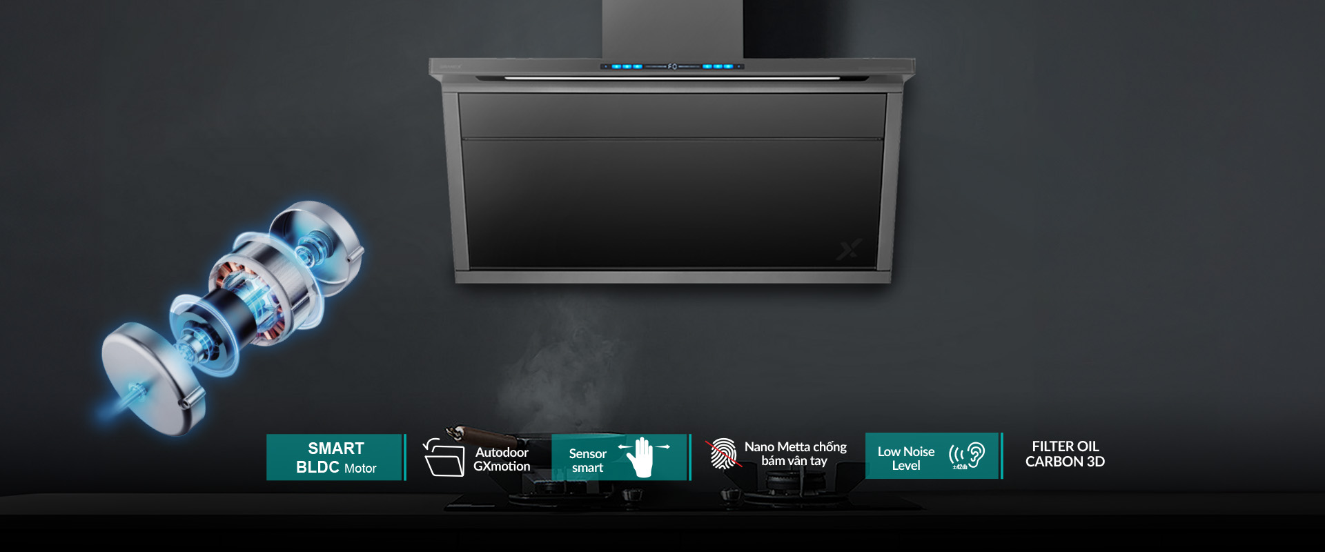 Máy hút mùi Grand X được đánh giá cao về thiết kế hiện đại và công nghệ tiên tiến, mang lại hiệu suất hút mùi hiệu quả cho không gian bếp. Dưới đây là một số đặc điểm nổi bật của sản phẩm:
