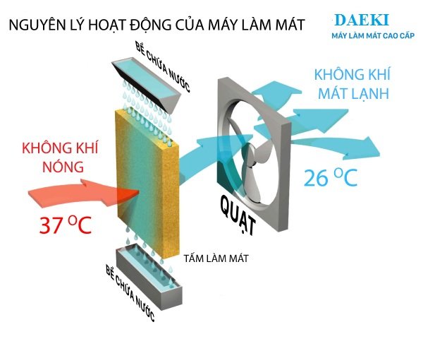- Quạt điều hòa Daeki DK 8200C hoạt động theo nguyên lý tự nhiên dựa vào hiện tượng bốc hơi nước, rất an toàn cho sức khỏe, không gây sốc nhiệt