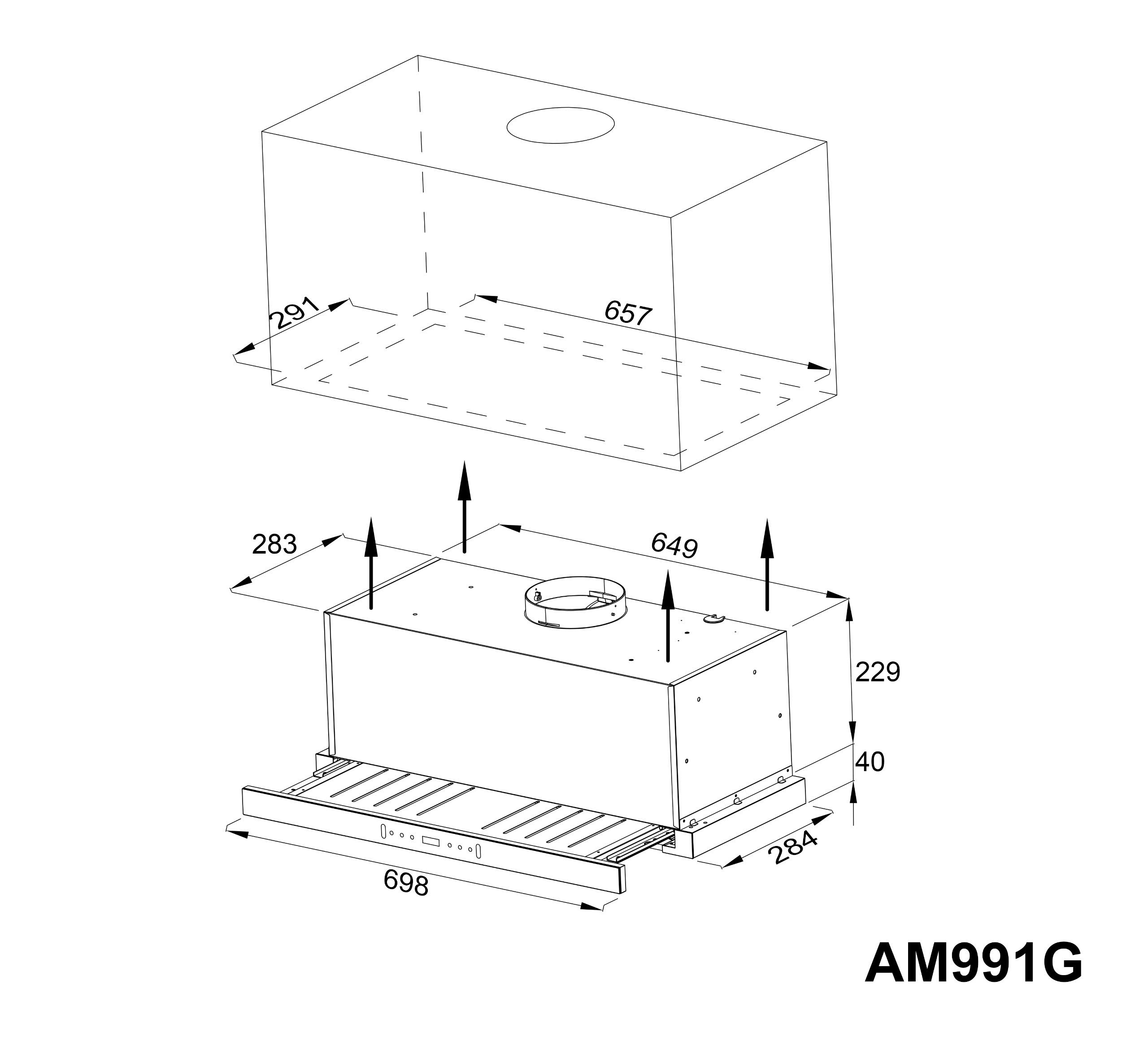 Thông số máy hút mùi âm tủ Munchen AM991G tự động thò thụt