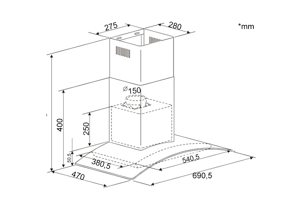 Thông số kỹ thuật Máy hút mùi Dann DA70E