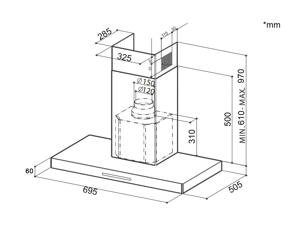 Thông số máy hút mùi Dann DS 70T chính hãng