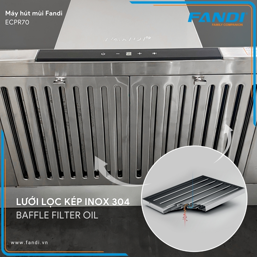 Thông số máy hút mùi Fandi ECPR70 hàng nhập Malaysia