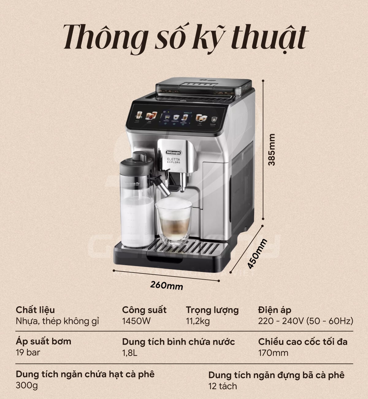 Thông số máy pha cà phê De'Longhi Eletta Explore