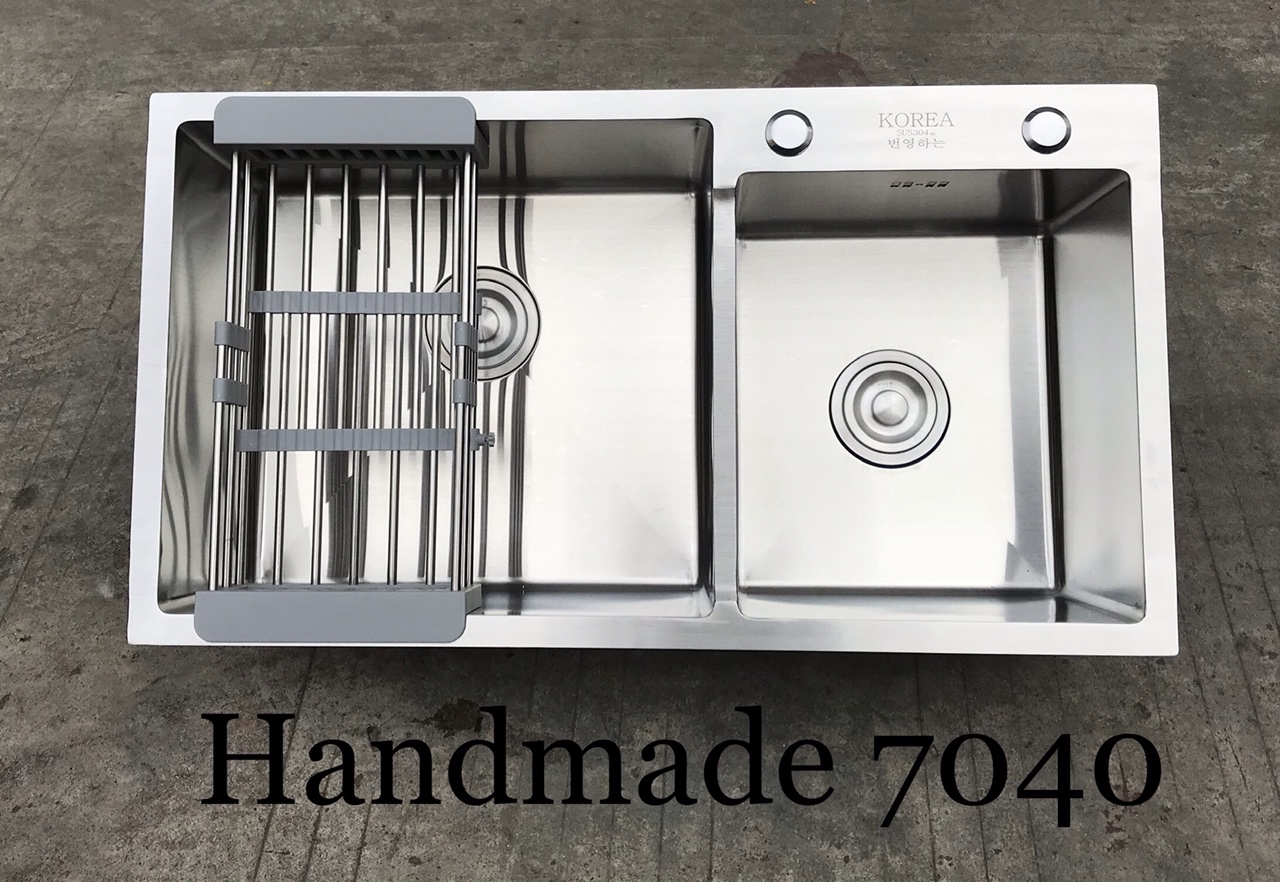 - Chậu rửa bát Korea 7040 được thiết kế với kiểu dáng đẹp, vuông vắn góc cạnh tinh xảo, điểm nổi bật là chậu được làm bằng chất liệu inox 304 – đây là loại inox cao cấp, chồng gỉ sẻt, bám cặn, dễ vệ sinh và bền bỉ với thời gian.