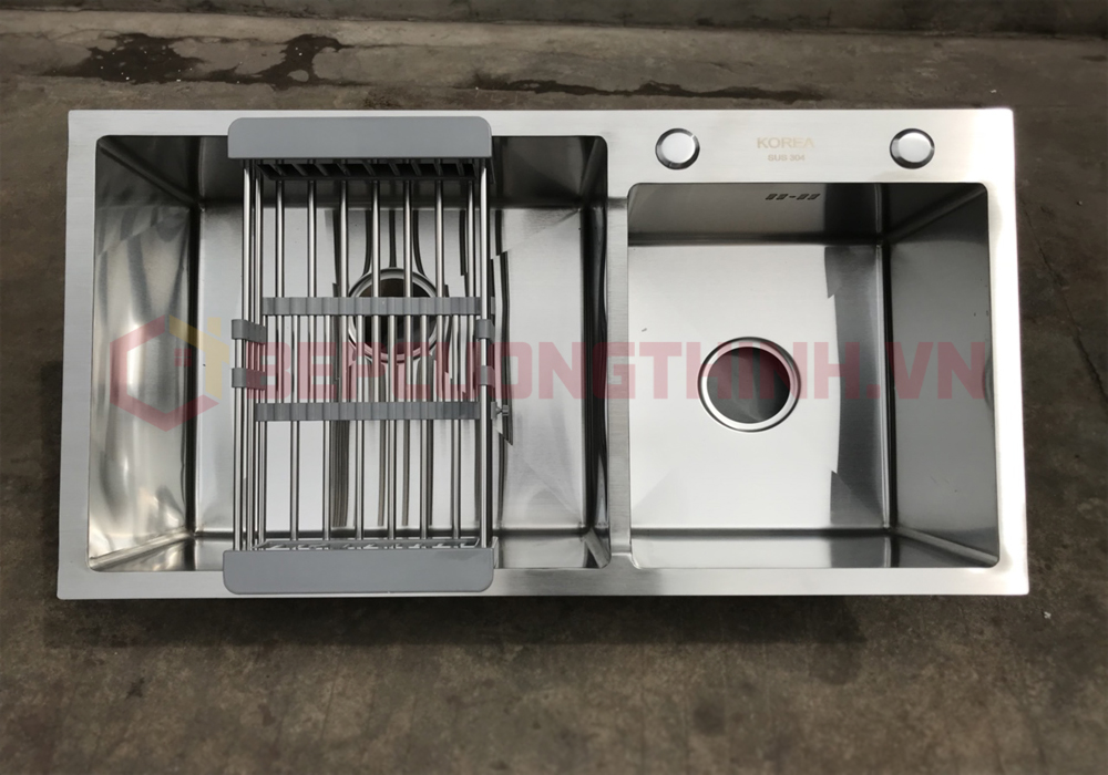 - Chậu rửa bát Korea 7843 có kích thước vừa đẹp phù hợp ở cả nhà đất hay căn hộ chung cư với kích thước cắt đá là 75x40cm có độ bền cao nhờ sử dụng chất liệu inox 304 siêu bền không gỉ sét.