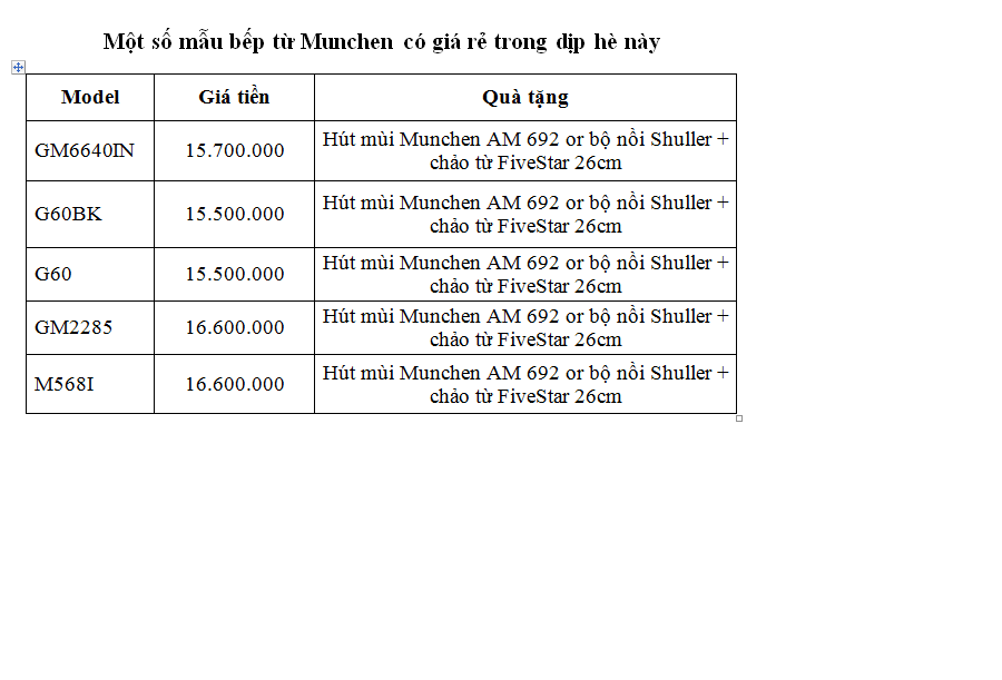 Săn bếp từ Munchen giá rẻ ưu đãi chào hè 2019