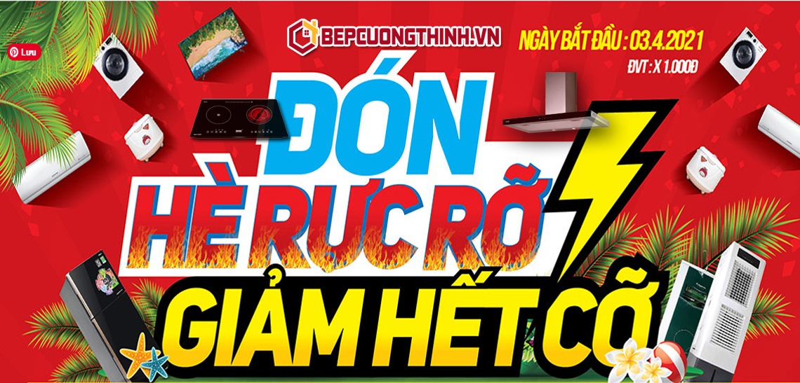 Khuyến mãi lớn chào mừng đại lễ 30/4-1/5. Bếp Cường Thịnh Sale toàn bộ các sản phẩm thiết bị bếp nhập khẩu, giảm từ 30-70% + quà tặng hấp dẫn. Hỗ trợ giao hàng và lắp đặt miễn phí, đặc biệt khách hàng mua hàng trực tiếp tại Showroom nhận ngay tiền mặt trị giá từ 200k - 500k/đơn hàng