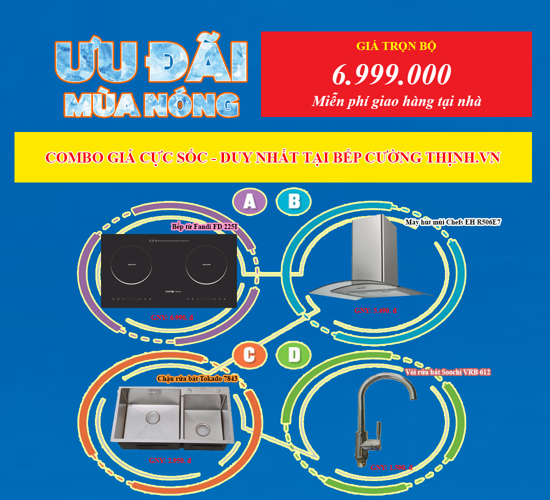 COMBO BẾP + HÚT MÙI + BỘ NỒI Giá chỉ 9,8 triệu