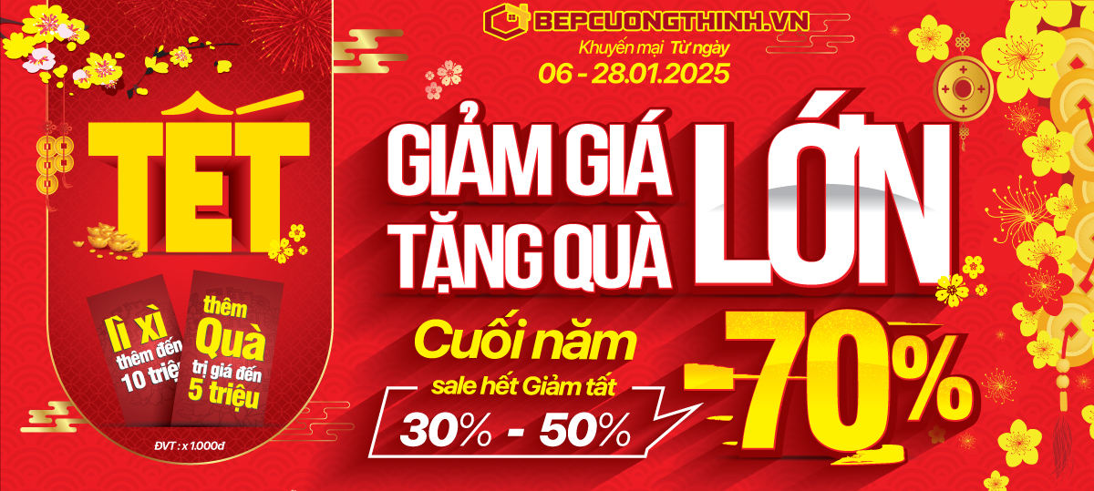 Hệ thống Bếp Cường Thịnh khuyến mãi cuối năm chào xuân Ất Tỵ 2025 với nhiều chương trình khuyến mãi tặng quà hấp dẫn giành tặng quý khách hàng với ưu đãi cực lớn khi mua hàng