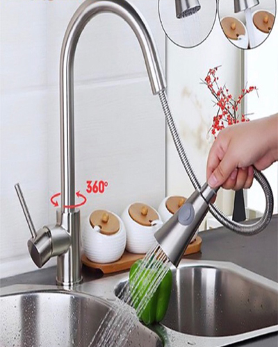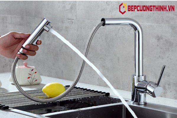 Có thể nói đây là mẫu vòi rút dây đáng túi tiền của chị em nội trợ,vòi có thiết kế mẫu mã đa dạng thích hợp với mọi không gian bếp, từ đơn giản tới sang trọng. Đầu vòi thiết kế có thể rút ra xoay linh hoạt 360 độ ,xoay các hướng khác nhau tiện dụng trong quá trình chế biến thực phẩm trước khi nấu nướng,cổ vòi cao dễ dàng đưa đồ rửa vào chậu mà không bị vướng cùng với hệ thống lưới lọc tạo bọt, chống bám cặn giúp nước xả vào chậu không bị bắn.