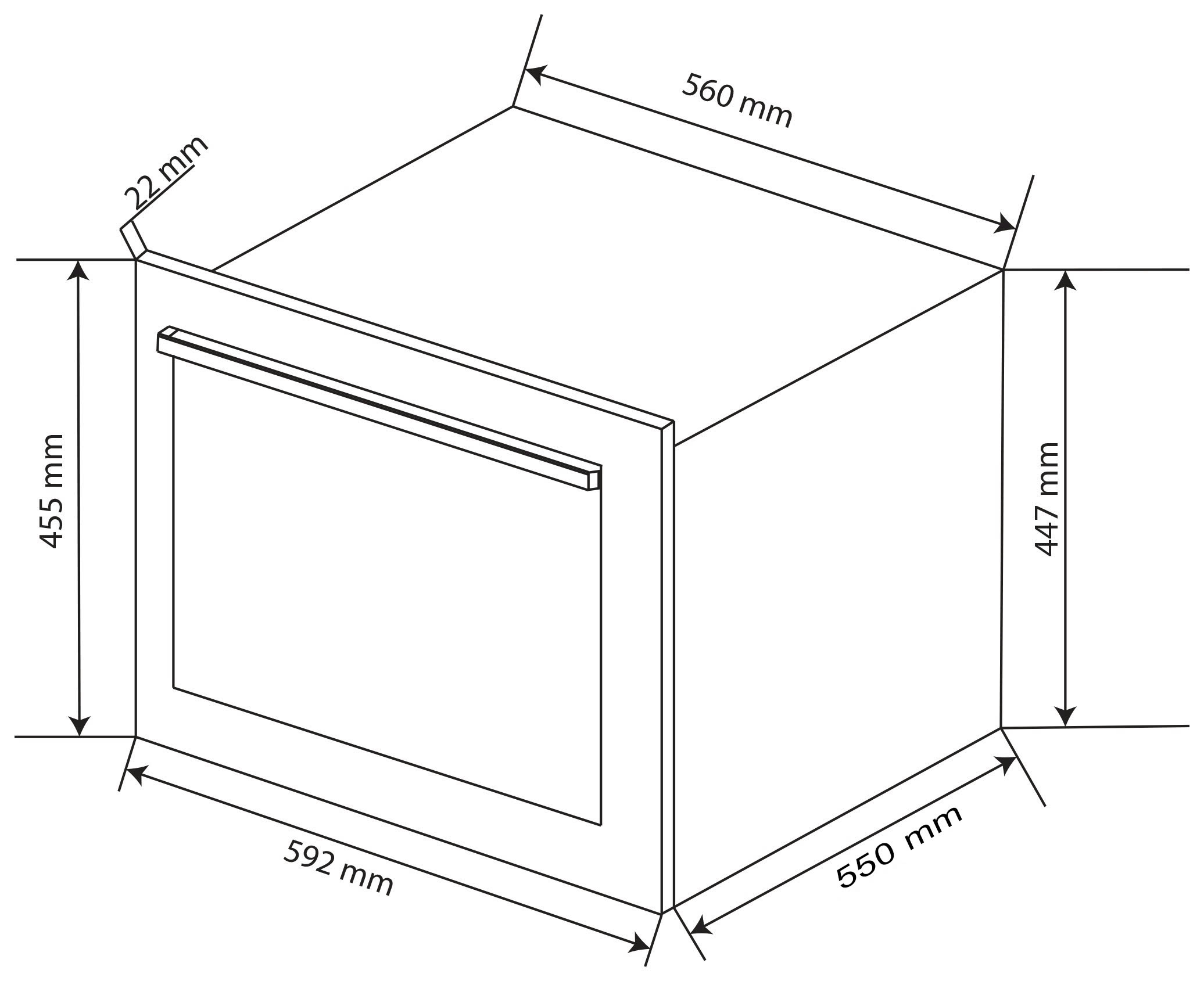 Kích thước lỗ khoét (R x C x S): 560 x 447 x 600 (mm)