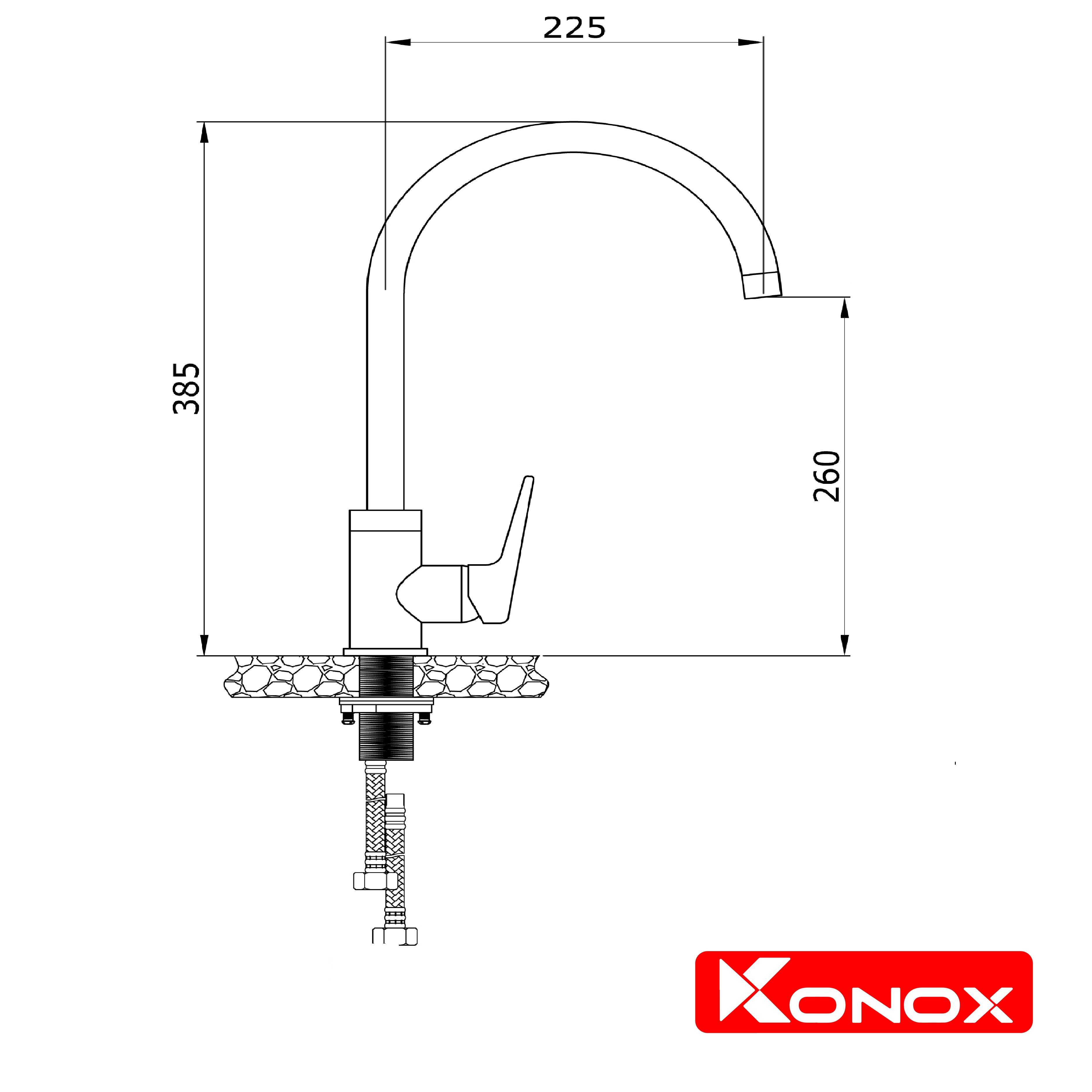 Vòi rửa Konox KN1201 được chế tạo từ hợp kim đồng 59% tiêu chuẩn Châu Âu CW617N, với bề mặt xử lý công nghệ PVD Chrome cao cấp 5 lớp, cho độ bền màu bề mặt vượt trội và sang trọng