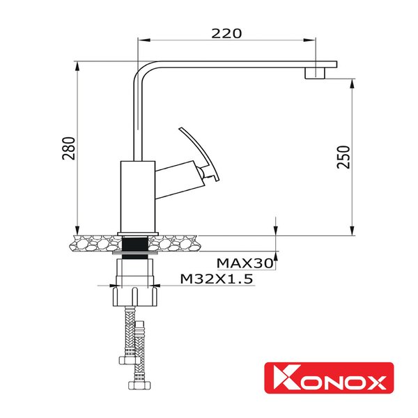 Vòi rửa bát Konox dòng sản phẩm bề mặt được đánh bóng thủ công theo công nghệ Hàn Quốc.