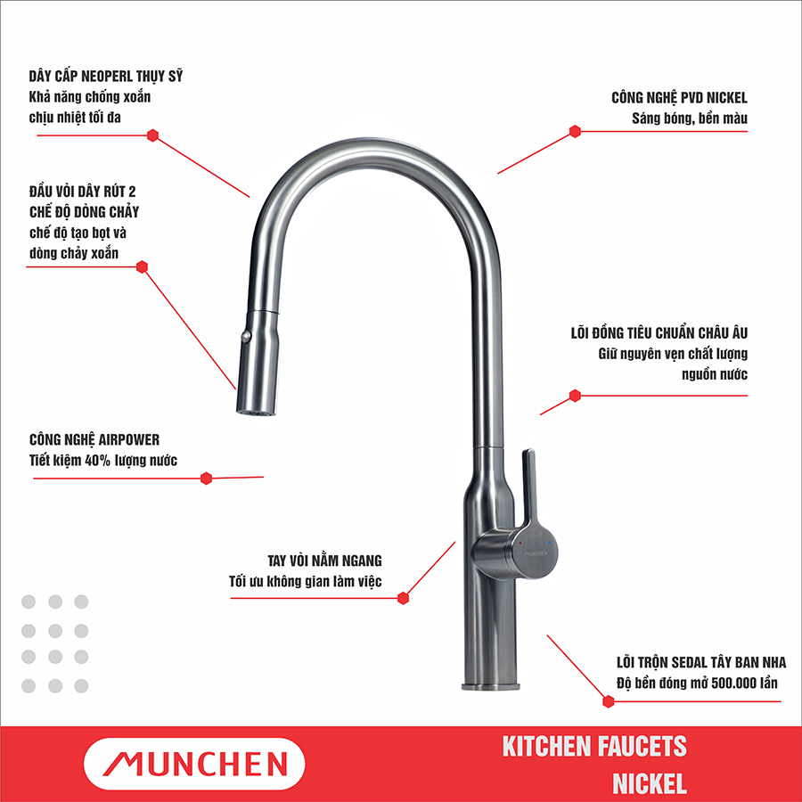 Thông số kỹ thuật vòi rửa bát rút dây Munchen MBF81821N