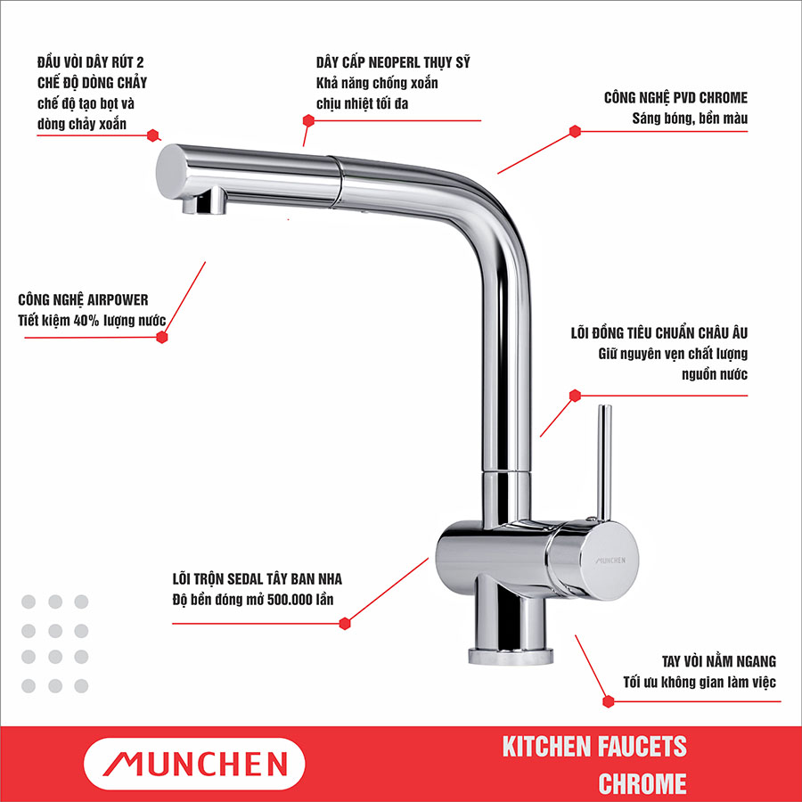 Quy cách Hình dáng: Vòi thiết kế bo tròn, đầu vòi cong. Một tay vòi nằm ngang